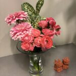 今週のお花は、ディンゴファン、カーネーション、てまり草、ニゲラです。ニゲラという花は珍しいですね、種子には芳香があり昔はパンやケーキの香りづけとしてとして使われたそうです。バニラのような香がするようですよ。