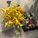 今週のお花は、ピンクッション、セダム、ケイトウ、アワです。